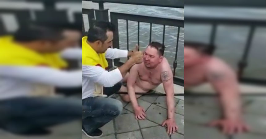 En el video se puede ver cómo uno de ellos trabaja en rescatar al hombre, que no se ve en buenas condiciones. Incluso el colombiano arriesgó su vida para salvar al ruso.