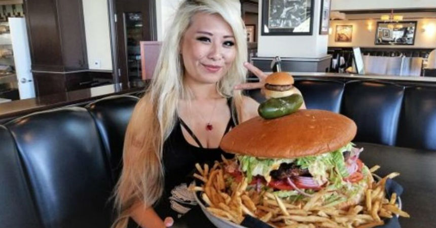 Ella resultó vencedora a pesar que no se trataba de cualquier bocadillo: el sándwich llevaba una hamburguesa de un kilo, cinco huevos fritos, 200 gramos de tocino, queso, lechuga y tomate.