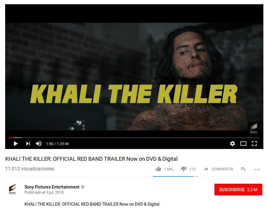 Y pese a que el tráiler se subió a varios canales de YouTube sin problemas, el canal oficial de Sony Pictures Entertainment, subió «Khali the Killer» completa, en alta definición y de manera gratuita para todo el público.