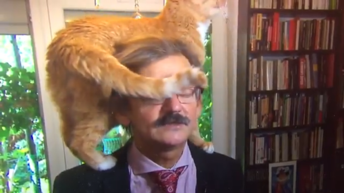 En viral se convirtió gato que interrumpe a historiador en medio de una entrevista
