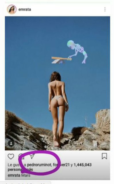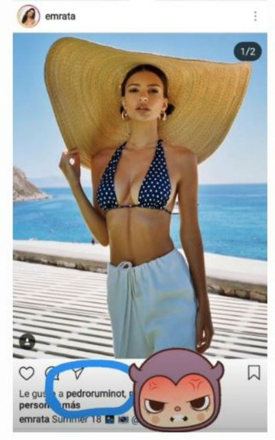 Resulta que la rubia vio que Ruminot le puso corazones a varias fotografías de la modelo y actriz Emily Ratajkowski que sale en posturas bastantes sensuales en Instagram, por lo que les sacó pantallazo y las compartió en las redes sociales.