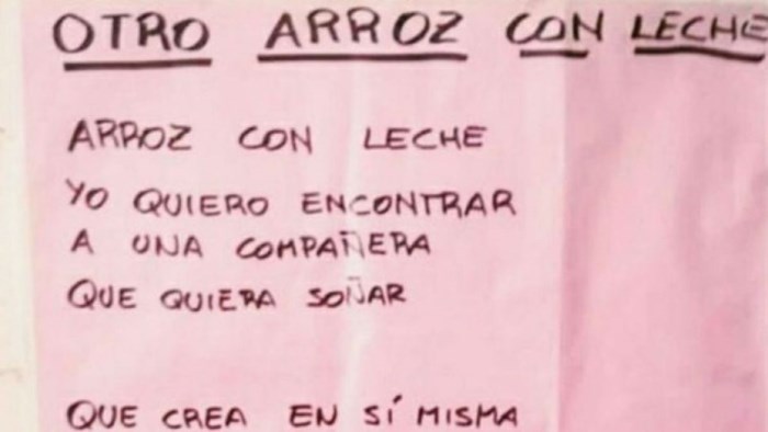 Se lee en la letra de la nueva versión que en los últimos días se volvió viral gracias a una foto de la canción escrita en una sala de clases que rápidamente fue compartida por usuarios de redes sociales.