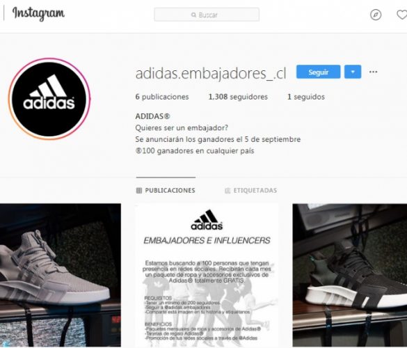 Un buen ejemplo de ello es lo que está circulando en diferentes partes del mundo con un supuesto concurso que impulsa Adidas, el que busca «embajadores» en redes sociales exigiendo unos simples requisitos entre ellos tener «mínimo 200 seguidores».