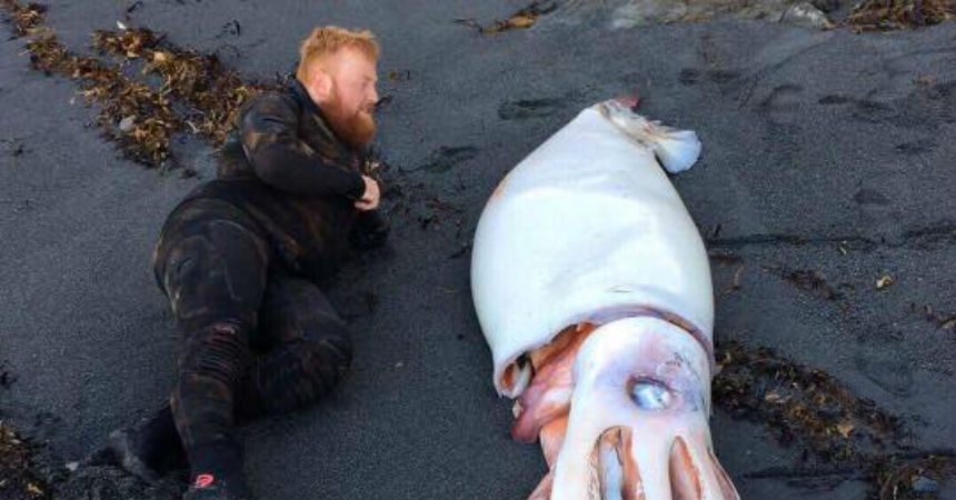 Un impresionante calamar gigante fue hallado por tres hermanos buceadores que recorrían las costas en el sur de Wellington, capital de Nueva Zelanda.