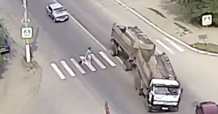 En el video se puede ver a un perro cruzando un paso de cebra junto a su dueña que camina totalmente distraída. En ese momento, un camión se acerca a toda velocidad sin tiempo para poder pisar el freno y parar. El perro se da cuenta de la velocidad del camión y para en seco tirando de la correa para que su dueña también pare de caminar.