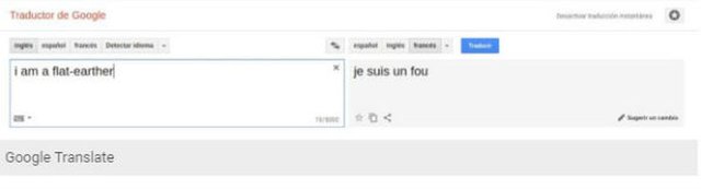 Ante esto Google decidió hacer lo suyo, e introdujo una sutil, pero divertida broma en su traductor. Cuando en Google Translate escribes en inglés «I am a flat-earther» (soy un terraplanista), y pides traducir al francés, el resultado será «Je suis un fou».