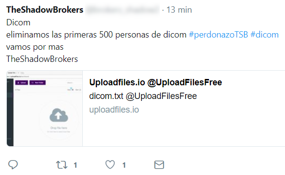 Y el tema de los hackeos no para, ya que la noche de este martes 28 de agosto un grupo de hackers del grupo The Shadow Brokers compartió publicó un nuevo archivo en redes asegurando que se trataba de un listado de personas a las cuales les habrían realizado un “perdonazo” en Dicom.