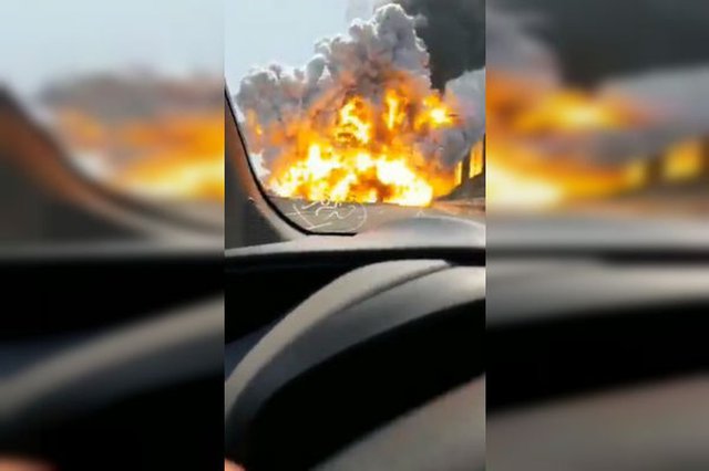 La explosión y la posterior columna de humo fue registrado por varios automovilistas y se pudo divisar a varios kilómetros de distancia.