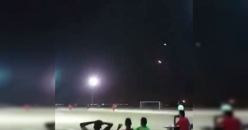 El hecho ocurrió el pasado 2 de agosto mientras un grupo de personas participaba de un partido de fútbol juvenil. Lo que más ha llamado la atención es la naturalidad con que los asistentes ven pasar los misiles sobre ellos.