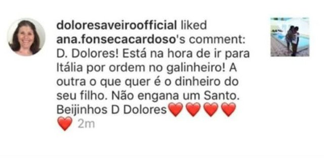 Por lo menos así quedó de manifiesto luego que Aveiro le diera «like» a un comentario de un usuario que trataba de «vaca» a la joven de 24 años, según señala el sitio ABC.
