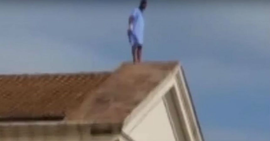 El hombre trepó hasta lo más alto del edificio, en camisón y poniendo en peligro su vida.