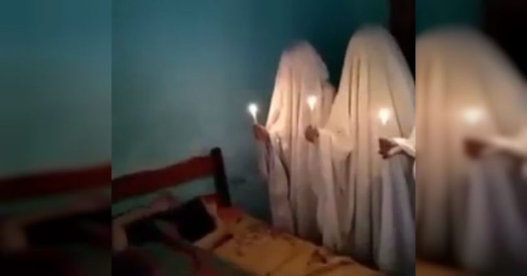 Los tres jóvenes decidieron disfrazarse de fantasmas poniéndose unas sábanas blancas sobre la cabeza. Además, aparecieron sujetando unas velas en las manos y se acercaron lentamente hacia la víctima mientras de fondo sonaba la canción «Ameno» de ERA. El resultado fue simplemente espeluznante.