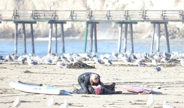 «Salimos del agua y él estaba cargando las tablas. De repente se cayó. Fue tan extraño. Inmediatamente corrí hacia él y lo asistí. No respondía, no tenía pulso. Empecé la RCP y pedí ayuda», continuó.