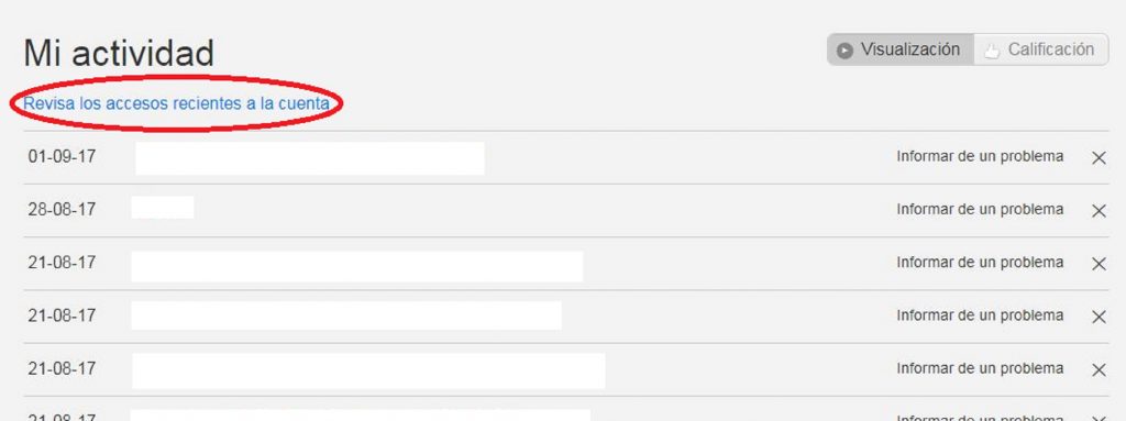 Finalmente, accederás a todas plataformas desde las que ha accedido a tu suscripción en los últimos días: