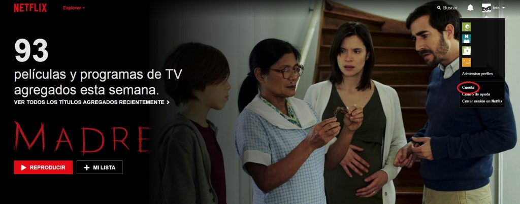 Ingresa a tu perfil y luego a «Cuenta» que está en el menú principal: