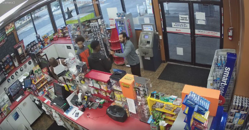 El hecho ocurrió en Auburn, Alabama (EE.UU.) y en las imágenes captadas por una cámara de seguridad se puede ver a un hombre y dos adolescentes entrar a una tienda de una gasolinera.
