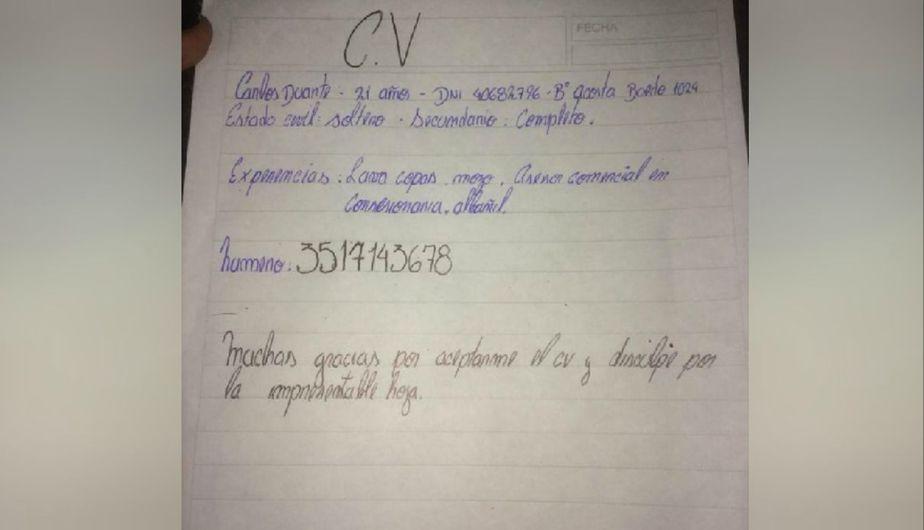 Hace poco te contamos el caso de un chiquillo argentino que buscaba trabajo con un CV escrito a mano, lo que conmovió en redes.La historia de Carlos Duarte