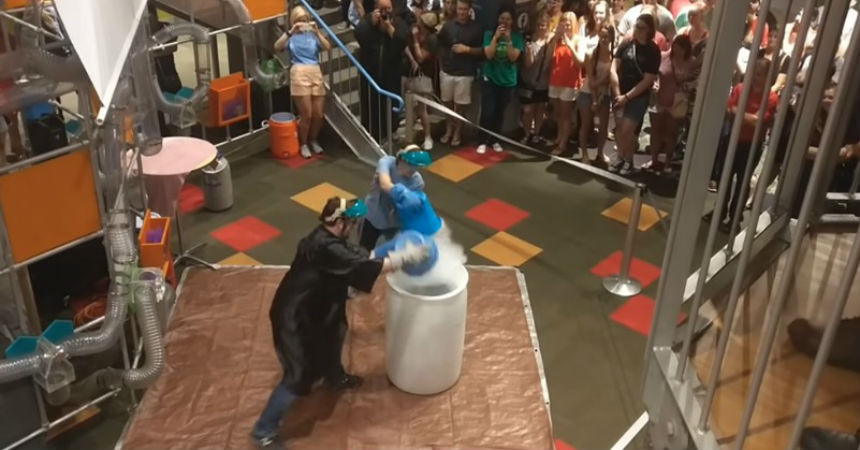 Había un numeroso grupo de visitantes alrededor de las dos personas que estaban a cargo de la exhibición, en que los encargados del espectáculo debían verter agua caliente en un recipiente lleno de nitrógeno líquido y observar la reacción. Fue cuando se mezclaron ambos componentes, que se produjo la peligrosa explosión.