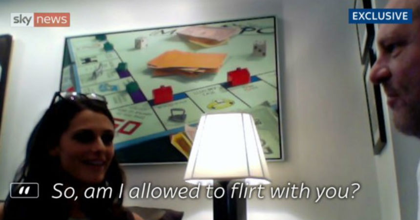 Al principio del material audiovisual se ve cuando Weinstein llega al lugar de la reunión. Cuando la mujer de negocios le ofrece su mano para saludarlo, el productor se niega y decide abrazarla y acariciarle la espalda. En el encuentro que tenía como fin debatir sobre un nuevo sistema de medición de audiencias, el productor de cine comenzó a hacerle preguntas fuera de lugar como: «¿Puedo coquetear contigo?», a lo que la intérprete responde: «Ya veremos, un poquito».