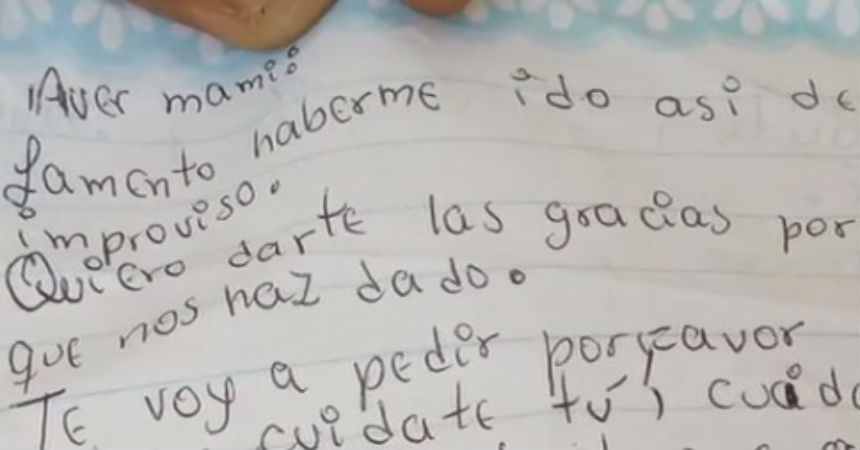 «¿Cuídate, sí? Cuida al bebé, porque a pesar de todo yo lo quiero mucho», se lee también en la misiva que dejó la menor de edad.