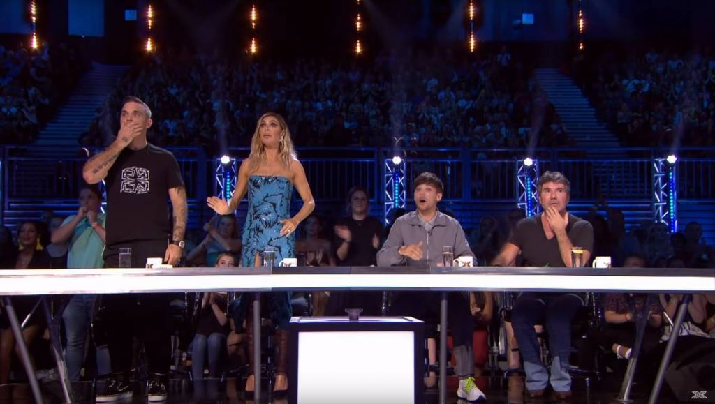 Los jueces Robbie Williams y Ayda Field se pusieron de pie inmediatamente para intentar mirar por donde había caído el chiquillo. El resto del jurado, compuesto por Louis Tomlinson y Simon Cowell, se mostró igualmente preocupado, llevándose las manos a la boca mientras esperaban noticias sobre su estado.