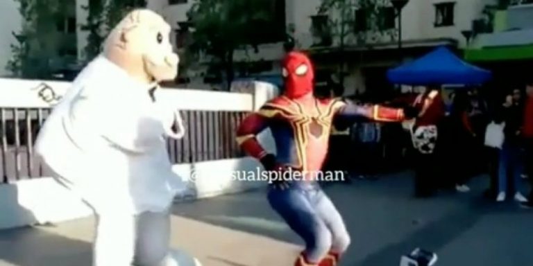 Video: Prendido baile de «Estúpido y Sensual Spiderman» vs. Dr. Simi sorprendió a los transeúntes y se volvió viral
