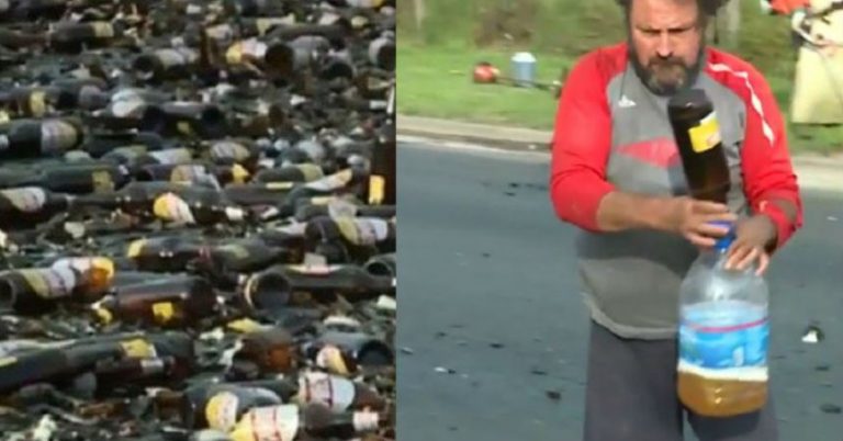 Testigos y vecinos se acercaron a recuperar algunas botellas e incluso llegaron con bidones, salvando algunos litros de cerveza.