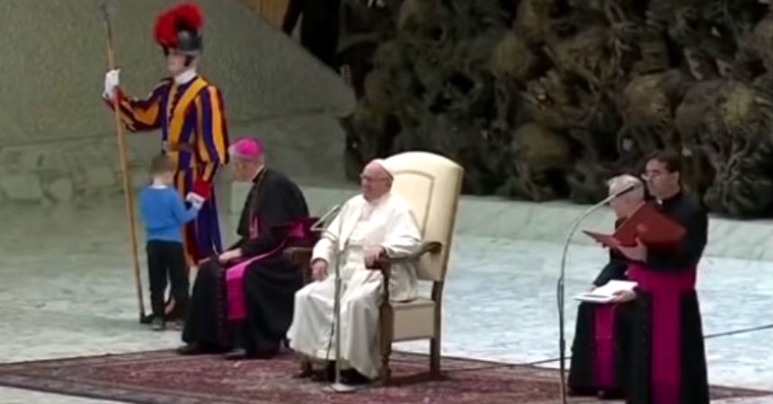 Un tierno momento se vivió en la audiencia general del Papa Francisco luego que un niño de siete años rompiera con el estricto protocolo del Vaticano e interrumpiera al sumo pontífice.