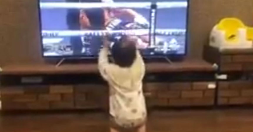Los niños admiran a sus padres desde la más tierna edad. Así lo ha demostrado un bebé que se ha vuelto viral en redes, debido a su reacción al ver a su padre ganar una pelea de boxeo por televisión.