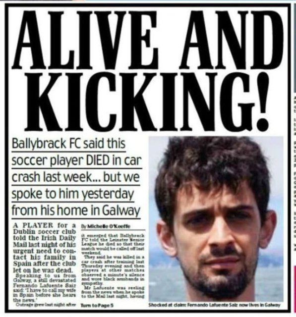 El aludido se enteró de que estaba «muerto» luego que una persona de su trabajo lo llamara y le avisara de la curiosa noticia. «Por suerte yo estaba trabajando, así que supo enseguida que yo estaba bien», dice Lafuente.