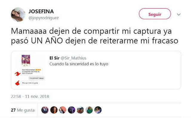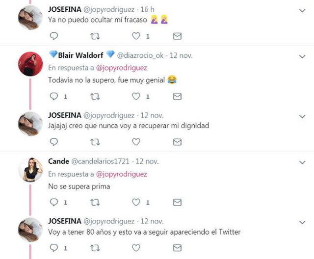 Josefina ya había pasado por el bochorno hace un año, cuando filtró la conversación, pero extrañamente ahora volvió a hacerse viral: «creo que nunca voy a recuperar mi dignidad», escribió en Twitter la joven argentina.