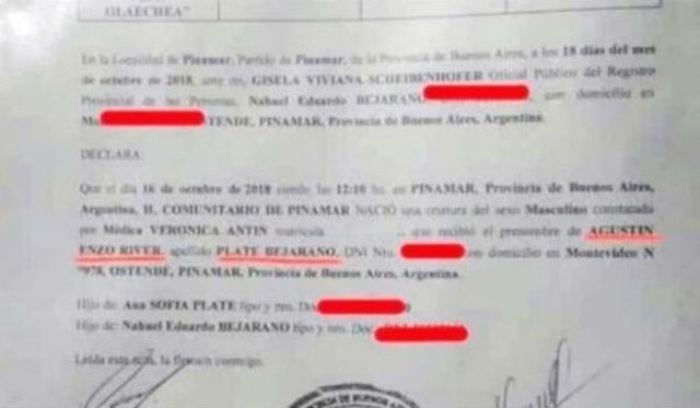«Se me ocurrió preguntarle a mi señora si me daba la posibilidad de llamarle River, ya que el apellido de ella es Plate y coincidía todo. Y me dijo que sí, que después lo veíamos. Y con el correr del tiempo se fue afirmando esa idea», dice Nahuel Eduardo Bejarano, según recoge el sitio 20 minutos.