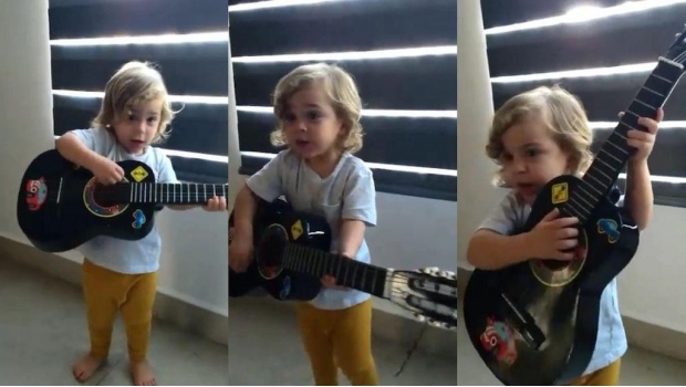En este se puede ver al mini cantante con guitarra haciendo su performance.