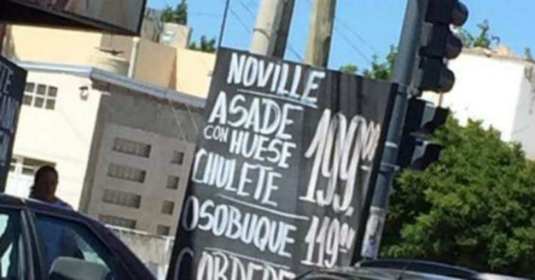 En el cartel se puede ver la clásica oferta de carnes, pero esta vez todas las letras finales fueron reemplazadas por «e», para así satirizar con el lenguaje inclusivo. «Asade con huese», «osobuque» y «cordere», son parte de la oferta para preparar un rico asado o una buena salsa, recoge ADNSUR.