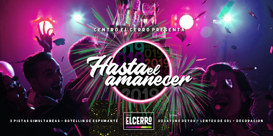 Desde las 2:00 am del 1 de enero, el centro El Cerro ubicado en calle Bombero Núñez 231, en pleno Barrio Bellavista, dará la bienvenida al 2019 con una fiesta que se extenderá hasta el amanecer. Cuenta con dos pistas de baile, tres barras y un espumante de regalo para los asistentes. En preventa el costo de las entradas parte desde los 8 mil pesos, mientras que el día del evento el ticket costará $15 mil.
