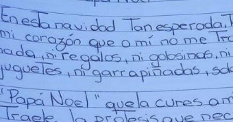 «En esta Navidad tan esperada te pido con todo mi corazón que a mí no me traigas nada, ni regalos, ni golosinas, ni pan dulce, ni juguetes», comenzó su carta.