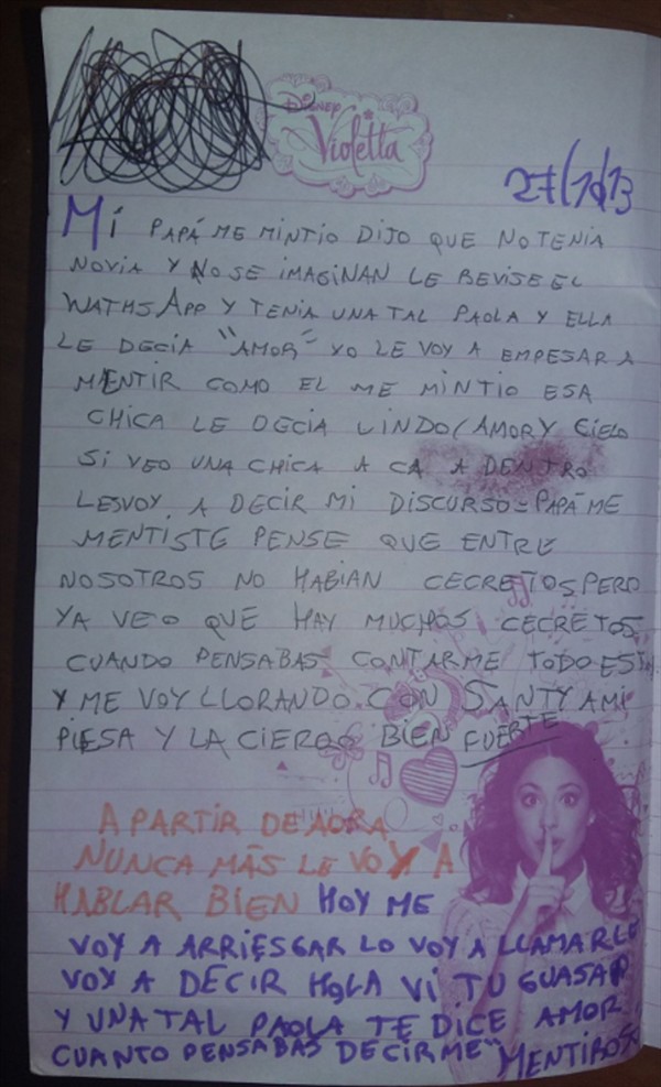 miren lo que escribí en el 2013 en mi diario de violetta cuando me entere q mi papa tenia novia JAKSJDJSJASJ que dramatica pic.twitter.com/k324RoEK3Z