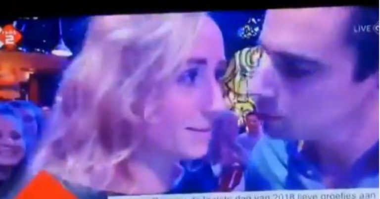 En el clip, que ya tiene más de 13 millones de reproducciones, se puede observar cómo la mujer esquiva el beso de su amigo durante el evento de una emisora de los Países Bajos.