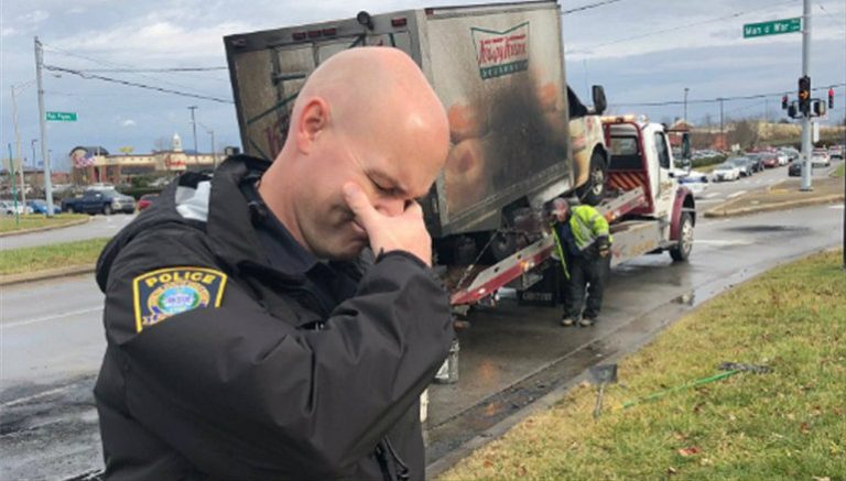 La Policía de Lexington, Estados Unidos, compartió en su cuenta de Twitter una serie de imágenes en la que unos agentes «lloran desconsolados» al ver un camión de donuts completamente quemado.