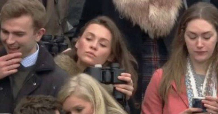 El hecho ocurrió este 1 de enero en la ciudad de Cheltenham y se transformó en viral gracias a la transmisión del evento de esta jornada por televisión. Y es que la chica fue captada bebiendo desde una «petaca» con forma de binocular mientras se realizaban las carreras de caballos.