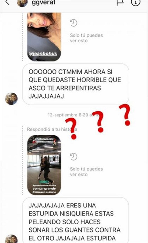 La cubana compartió las capturas de pantalla a través de sus Instagram Stories, bajo el texto «Cuando el odio no te deja vivir», donde además se logra ver el agresivo comportamiento del desconocido, que la estaba atacando desde agosto de 2018.