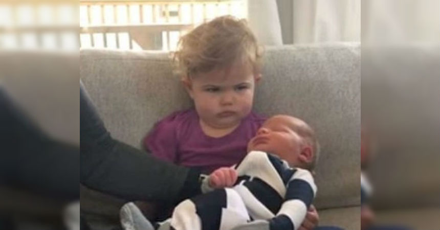 Cuando Little Ella se reunió y sostuvo a su nuevo hermanito por primera vez, su reacción fue épica. En lugar de una dulce sonrisa para el nuevo integrante, ella ni siquiera lo miró. Todo el tiempo estuvo mirando para adelante, con el ceño fruncido.
