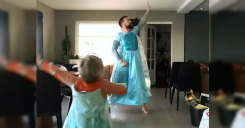 El noruego hizo feliz a su hijo de 4 años metiéndose en el papel de Elsa y bailando «Let it go».