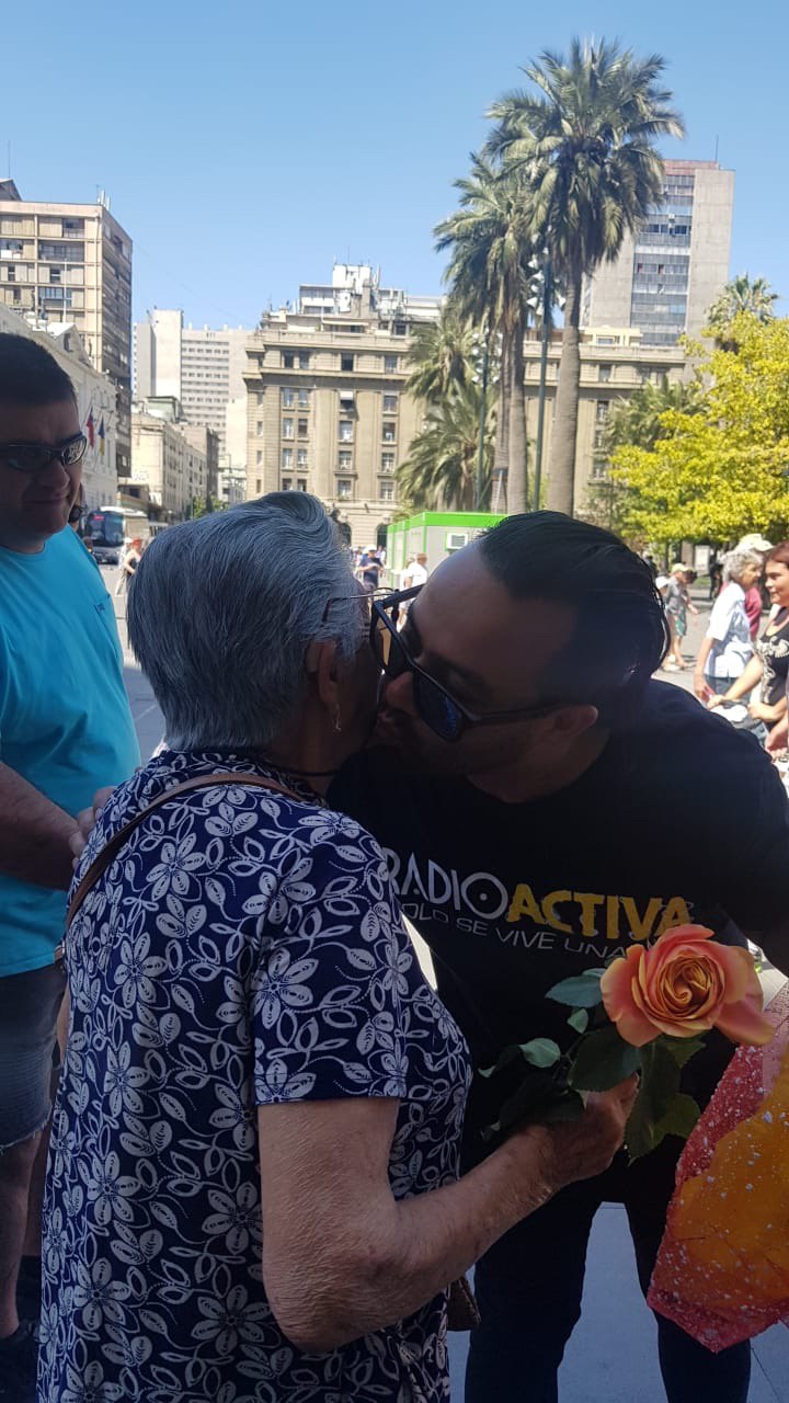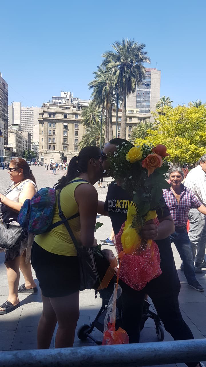 Los cabros entregaron flores, abrazos y uno que otro beso con las chiquillas que se acercaron mientras les quedaba el ramo.