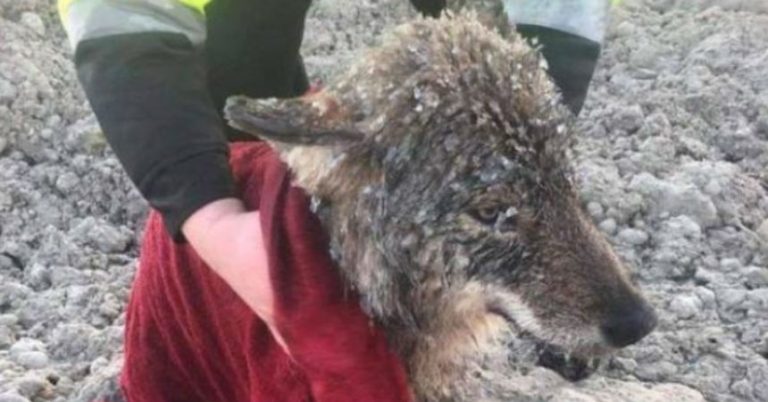 Creyeron que rescataban a un perro de un río congelado pero en realidad era un lobo