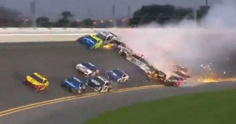 #Daytona500 | 💥 22 autos involucrados en el primer Big One del año. (🎥 @nascar) pic.twitter.com/qbknQ66jam