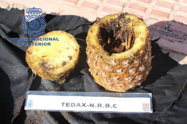 Al ver que era una falsa alarma, los agentes abrieron el paquete y ahí se encontraron con una piña hueca, clavos, alfileres, uvas, regaliz americano (contiene una sustancia tóxica llamada abrina) y dos papeles.