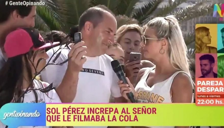 Algo así es lo que le paso a Sol Pérez una linda modelo argentina mientras despachaba en vivo para el programa Gente opinando de su país.