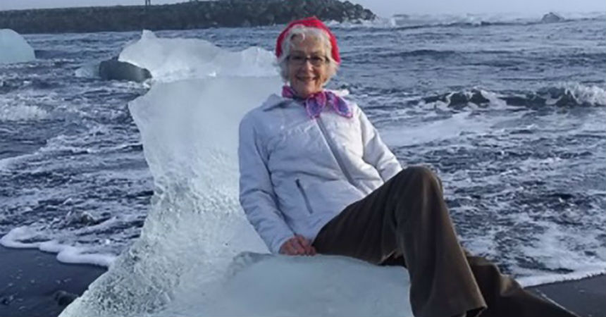 Mientras viajaban, la anciana y su hijo Rob, quien la acompañaba, hicieron una parada en el lago glaciar de Jokulsarlon, en el parque nacional de Vatnajokull, para sacarse algunas fotos sentados en una masa de hielo parecida a un trono.