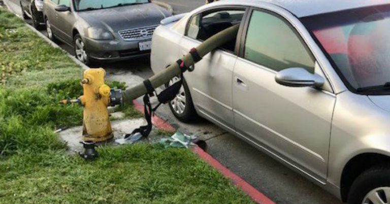 Fueron los propios bomberos quienes publicaron las fotografías del automóvil y le consultaron a los usuarios si alguna vez se les había pasado por la mente qué pasaría si dejaban su auto al lado de un grifo cuando había un incendio. Las fotos estaban para responder la pregunta.